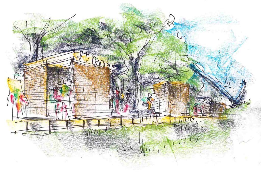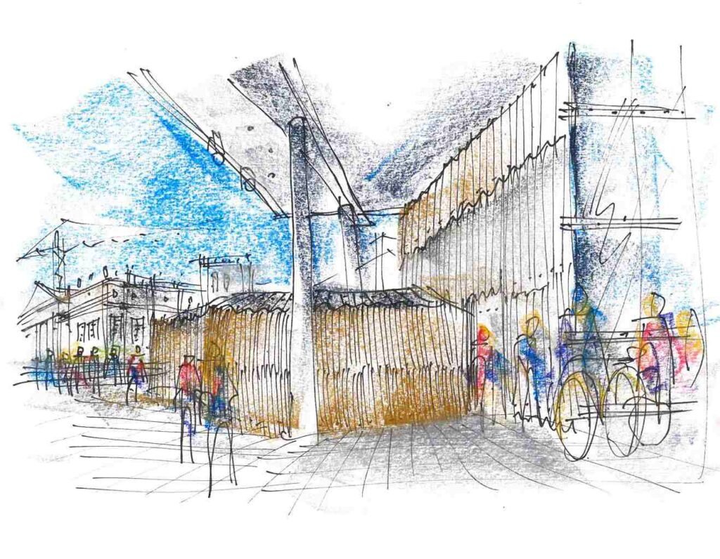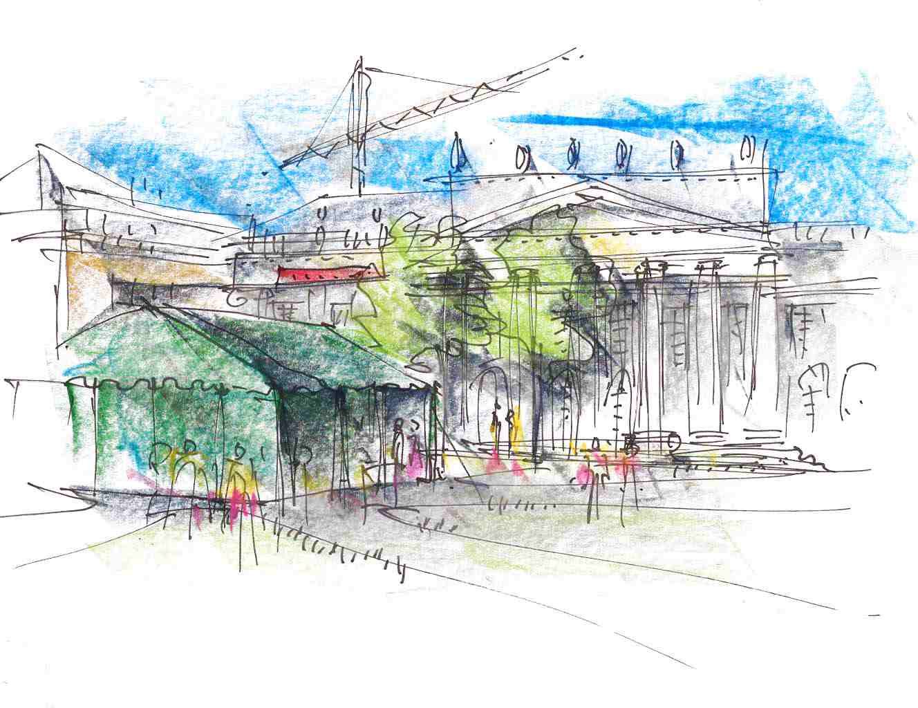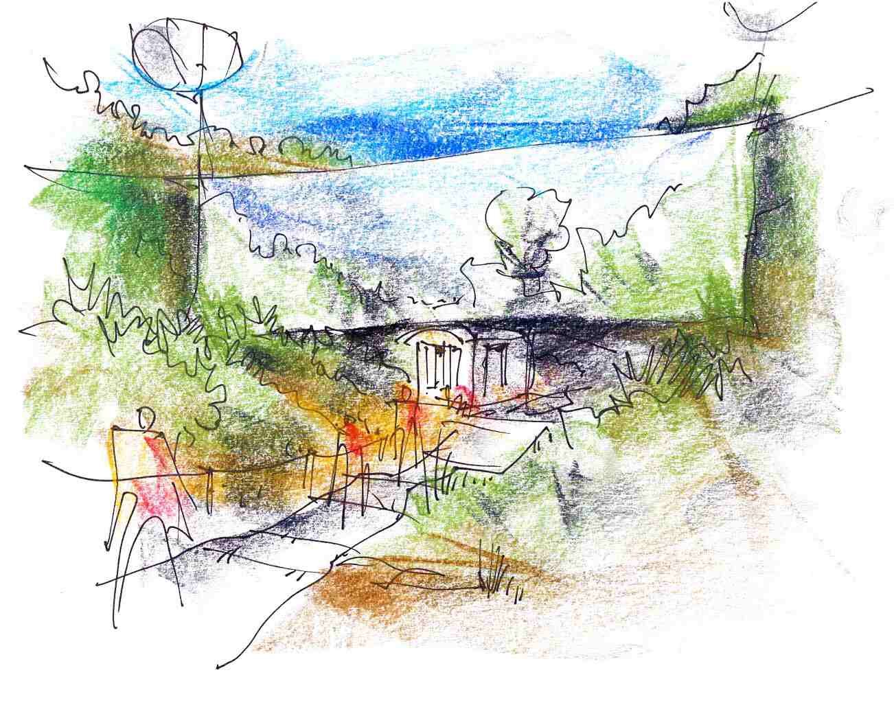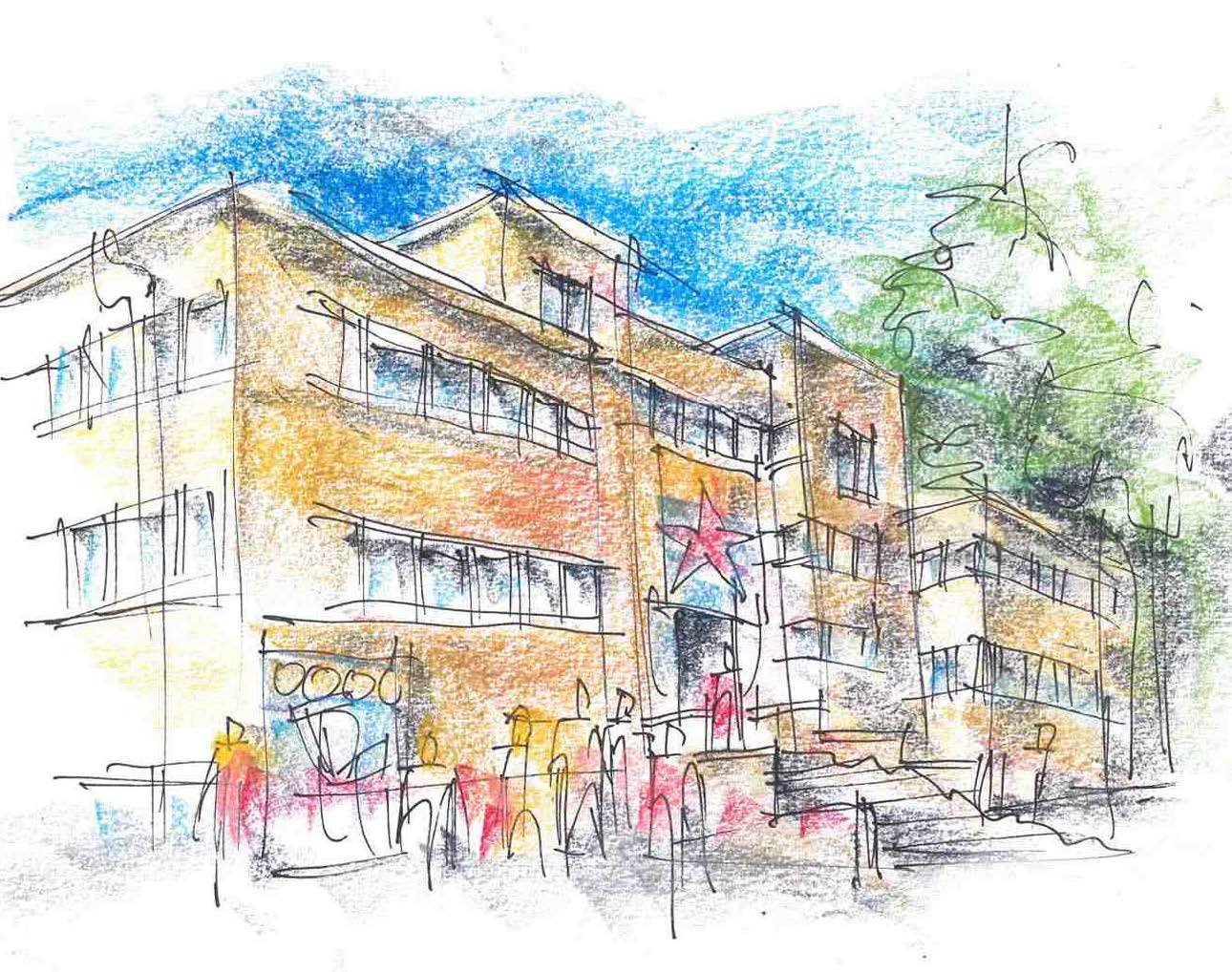 Strichzeichnung auf Papier mit Kreide